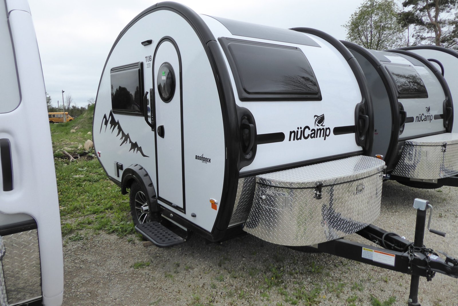 Aggressive Off-Road Tires Aluminum Platform Boondock Entry Handle & Graphics Custom Built Rear Aluminum Cage Heavy Duty Entry Door Step Heavy Duty Pitched Axle Made-To-Order Boondock Fenders