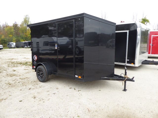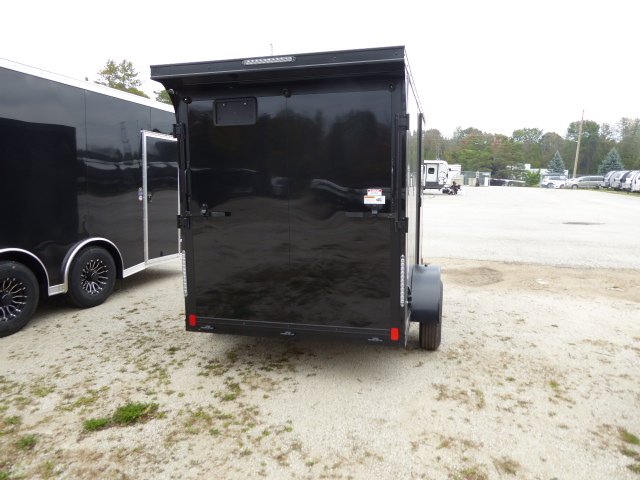 Stock #4530, 2026, WJ 6X10,Black, Black-Out Package, Ramp Door, Single Axle 3000 lb Torsion Axle,  15˝ Aluminum Radial Tires, 6’ Interior Height,  2” Coupler with Manual Jack on Single Axle, Flat 4 Plug, 24” V-Nose with Slant, Slant Cut Stone guard, 16˝ Walls, Ceiling & Floor, 3” Tube Frame, Fold-Down Rear Jacks, Flow-Thru Vents, 3/8” Plywood Walls,  3/4˝ Plywood Floor, 4-Bolt-in D-Rings, 1-12 Volt Dome Light With Switch, LED Exterior Lights, .030 Taped Exterior, One Piece Aluminum Roof, Mill Trim, Aluminum Holdbacks, 2” Corner Posts, , Also included is Registration & Plating