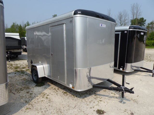 3,000lb Spring Axle, 15” Radial Tires, Colour Silver Frost, 6’ 9” Interior, 2” Ball, Flat 4 Plug, Silver power coated wheels, E-Z Lube Hubs, 3” Aluminum Top Rails, 16” ATP Stone Guard, 1-12V LED Dome Light, 2-Flow Thur Sidewall Vents, Aluminum Exterior Fenders, Metal Door Holdbacks, Clear Lens LED Clearance Lights, Clear Lens Strip Tail Lights, Undercoated Frame, Tongue Jack, 16” on Centers, Screwless Side Metal, Floor ¾ Engineered Wood, Walls 3/8 Engineered Wood