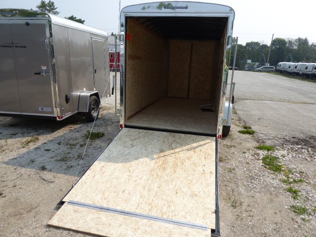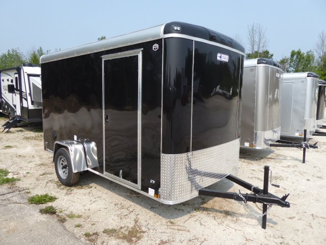 3,000lb Spring Axle, 15” Radial Tires, Colour Black, 6’ 9” Interior, 2” Ball, Flat 4 Plug, Silver power coated wheels, E-Z Lube Hubs, 3” Aluminum Top Rails, 16” ATP Stone Guard, 1-12V LED Dome Light, 2-Flow Thur Sidewall Vents, Aluminum Exterior Fenders, Metal Door Holdbacks, Clear Lens LED Clearance Lights, Clear Lens Strip Tail Lights, Undercoated Frame, Tongue Jack, 16” on Centers, Screwless Side Metal, Floor ¾ Engineered Wood, Walls 3/8 Engineered Wood, Ramp Door, Side Door