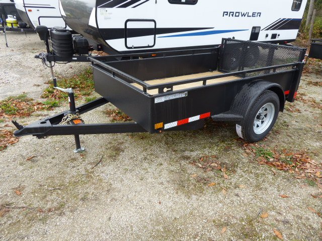 2026 Canada Trailer, UT5x8, Bi-fold Ramp with Mesh, 1- 3000 LB Axle with Easy Lube Spindles, Double Eye Spring Suspension, 205/75R15 Radial Tires, 2” A-Frame Coupler, 2,000lb Jack16” Solid Steel Sides + 3” Tie Rail, Pressure Treated Wood, (4) Welded in D-Rings, Spare Tire Mount, Transport & D.O.T Approved, Sealed Beam, LED Lights, Flat 4 Plug, Powder Coat + Scorpion Stone Guard, Registration and Plate Included