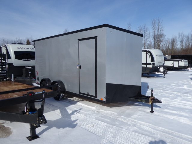 2026 United UJ 7×16, Charcoal, (Black Out Package), Barn Door, 2-3500lb Tandem Axle,5” Spread Axles, Torsion Axles, 15˝ Aluminum Radial Tires, 7ft Interior Height, 2 5/16” Coupler with Manual Jack, Round 7 Plug, 24” V-Nose , Slant Cut Stone guard, 16˝ On-Center Walls, Ceiling & Floor, 4” Tube Frame, Flow-Thru Vents, 3/8” Plywood Walls, 3/4˝ Plywood Floor, 4-Bolt-in D-Rings, 1-12 Volt Dome Light With Switch, LED Exterior Lights, .030 Taped Exterior (Screwless), One Piece Aluminum Roof, Milled Trim, Aluminum Holdbacks, 2” Corner Posts, Side Door 32” x 72”.Colour Silver/ Black-out.